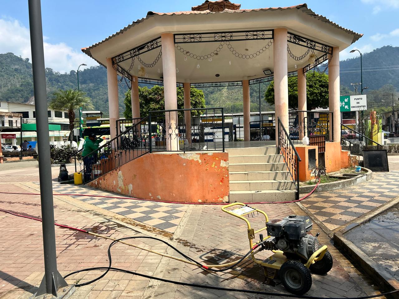 En días anteriores, gracias a la gestión del GAD Parroquial San Plácido y al convenio vigente con la empresa Portoparques , se realizó el mantenimiento del parque central de San Plácido.